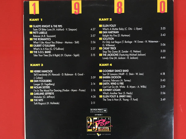 A1. Gladys Knight And The Pips - Taste Of Bitter Love 4:37 A2. Patti LaBelle - Release 3:57 A3. The Romantics - What I Like About You 2:56 A4. Gilbert O'Sullivan - What's In A Kiss 2:37 A5. The S.O.S. Band - Take Your Time (Do It Right) 3:15 B1. Ellen Foley - What's A Matter Baby 3:35 B2. Dan Hartman - Relight My Fire 3:43 B3. Solution (4) - It's Only Just begun 5:06 B4. Cheap Trick - Stop This Game 3:20 B5. The Jacksons - Lovely One 4:44 C1. Herbie Hancock - Tell Everybody 3:59 C2. Dan Fogelberg - Longer 3:14 C3. The Nolans - I'm In The Mood For Dancing 3:16 C4. Garland Jeffreys - Matador 4:36 C5. The Nits - Tutti Ragazzi 2:11 D1. Goombay Dance Band - Sun Of Jamaica 4:18 D2. Barbara Dickson - January, February 3:43 D3. Earth, Wind & Fire - Can't Let Go 3:29 D4. Johnny Logan - What's Another Year 2:56 D5. Ellen Foley, Jimmy Hall - The Time Is Now 3:49