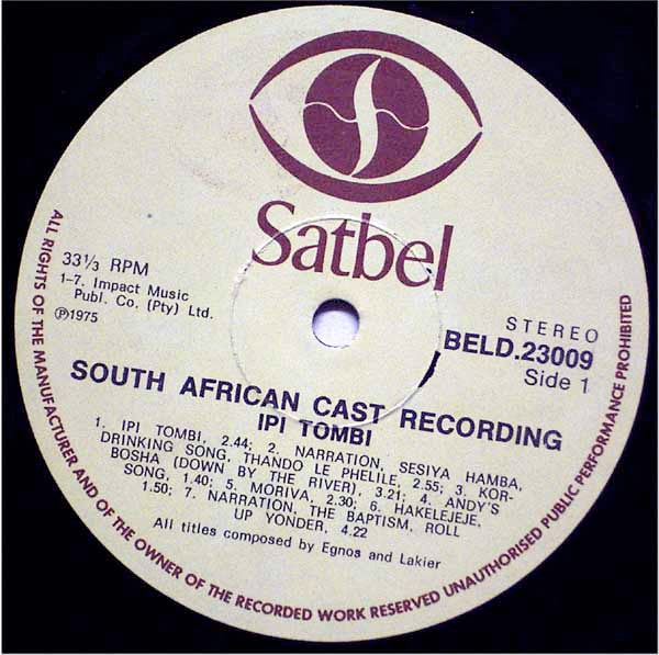Published 1975 by Impact Music Publ. Co (Pty) Ltd. except track B1 published by Copyright Control
