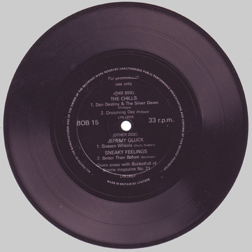 A1. The Chills - Dan Destiny & The Silver Dawn A2. The Chills - Oncoming Day B1. Jeremy Gluck - Sixteen Wheels B2. Sneaky Feelings - Better Than Before