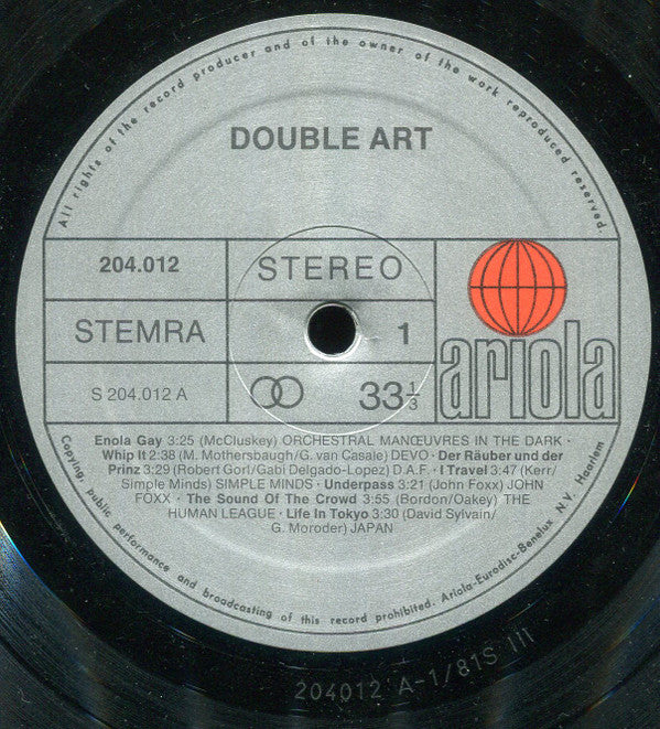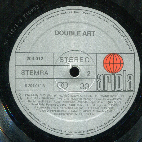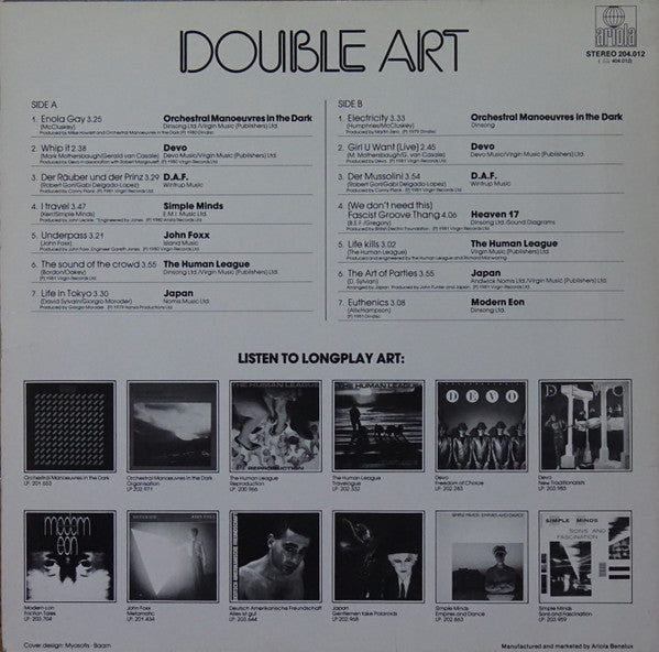 A1. Orchestral Manoeuvres In The Dark - Enola Gay 3:25 A2. Devo - Whip It 2:38 A3. Deutsch Amerikanische Freundschaft - Der Räuber Und Der Prinz 3:29 A4. Simple Minds - I Travel 3:47 A5. John Foxx - Underpass 3:21 A6. The Human League - The Sound Of The Crowd 3:55 A7. Japan - Life In Tokyo 3:30 B1. Orchestral Manoeuvres In The Dark - Electricity 3:33 B2. Devo - Girl U Want (Live) 2:45 B3. Deutsch Amerikanische Freundschaft - Der Mussolini 3:54 B4. Heaven 17 - (We Don't Need This) Fascist Groove Thang 4:06 B5. The Human League - Life Kills 3:02 B6. Japan - The Art Of Parties 3:55 B7. Modern Eon - Euthenics 3:08