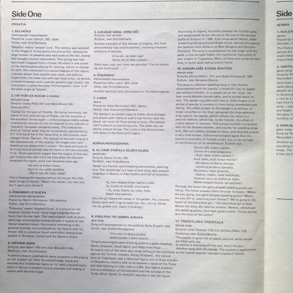 A1. Seljačko A2. Ive Kosi Za Kućun Livadu A3. Čobansko Iz Kijeva A4. Ojkanje A5. Ojkanje (Crne Oći) A6. Čobansko A7. Lindo . Bosnia, Hercegovina A8. Aj Sane Zaspala Dilber Sajma A9. Vino Piju Tri Dobra Junaka A10. Gorom Jaše Kićeni Svatovi A11. Trepetljika Trepetala . Serbia B1. Kolo Moravac B2. Ushtili Sabale Me Bahtače B3. Sima Banka Najmaduj . Macedonia B4. Beranča B5. Adana Oro B6. Zaramo B7. Zaramo B8. Bagpipe Melody B9. Prespansko Oro B10. Tsamiko