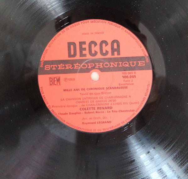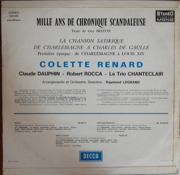 A. Colette Renard, Robert Rocca, Claude Dauphin, Trio Chanteclair, Guy Breton (2) - La Chanson Satirique de Charlemagne A Charles De Gaulle. Première Epoque: De Charlemagne A Louis XIV 20:50B. Colette Renard, Robert Rocca, Claude Dauphin, Trio Chanteclair, Guy Breton (2) - La Chanson Satirique de Charlemagne A Charles De Gaulle. Première Epoque: De Charlemagne A Louis XIV (Suite) 24:00