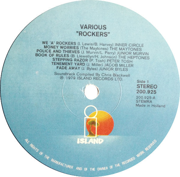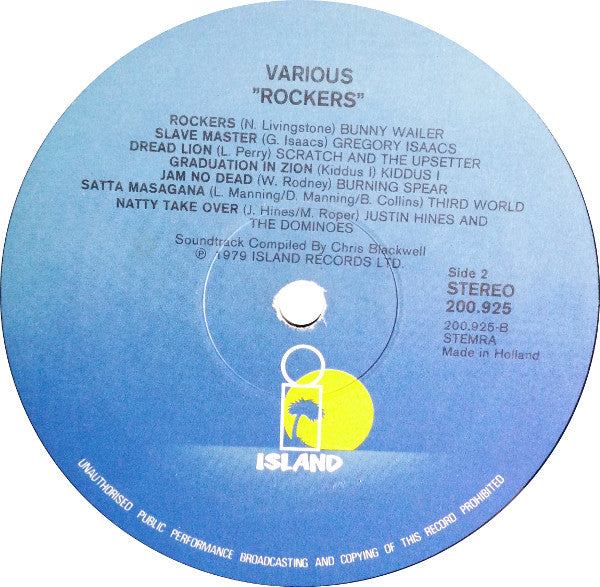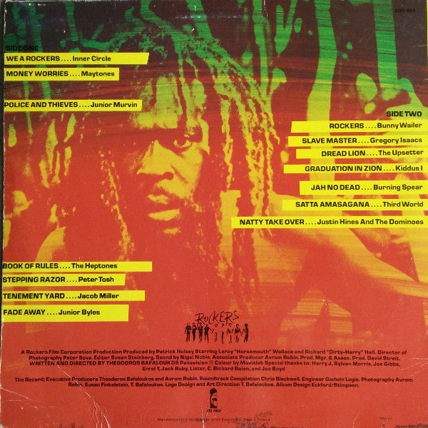 A1. Inner Circle - We A Rockers 3:23 A2. The Maytones - Money Worries 3:22 A3. Junior Murvin - Police And Thieves 3:52 A4. The Heptones - Books Of Rules 3:27 A5. Peter Tosh - Stepping Razor 3:16 A6. Jacob Miller - Tenement Yard 2:35 A7. Junior Byles - Fade Away 3:04 B1. Bunny Wailer - Rockers 5:36 B2. Gregory Isaacs - Slave Master 2:28 B3. Lee Perry & The Upsetters - Dread Lion 3:10 B4. Kiddus I - Graduation In Zion 2:46 B5. Burning Spear - Jah No Dead 2:11 B6. Third World - Satta-Amasa-Gana 3:32 B7. Justin Hinds & The Dominoes - Natty Take Over 3:08