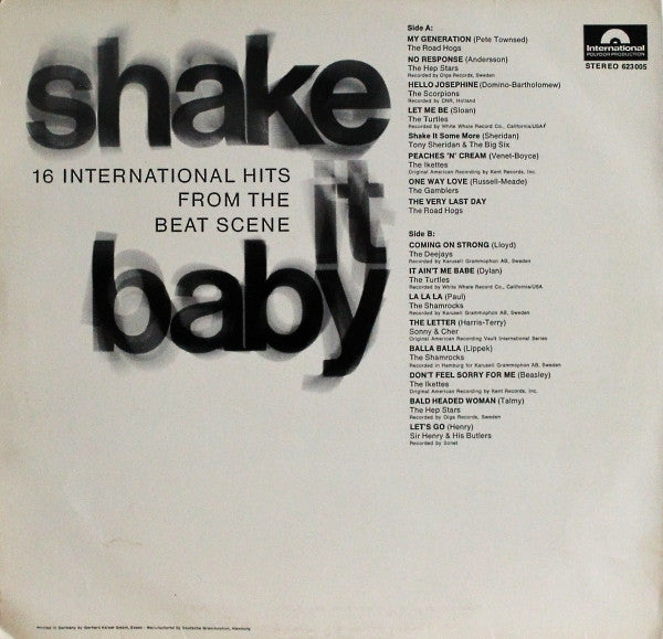 A1. The Road Hogs - My Generation A2. The Hep Stars - No Response A3. The Scorpions - Hello Josephine A4. The Turtles - Let Me Be A5. Tony Sheridan, Bobby Patrick Big Six - Shake It Some More A6. The Ikettes - Peaches 'N' Cream A7. The Gamblers (4) - One Way Love A8. The Road Hogs - The Very Last Day B1. The Deejays - Coming On Strong B2. The Turtles - It Ain't Me Baby B3. The Shamrocks (3) - La La La B4. Sonny & Cher - The Letter B5. The Shamrocks (3) - Balla Balla B6. The Ikettes - Don't Feel Sorry For Me B7. The Hep Stars - Bald Headed Woman B8. Sir Henry & His Butlers - Let's Go