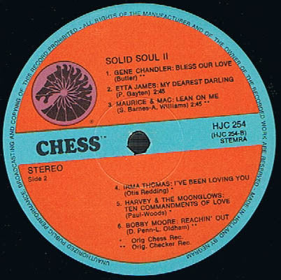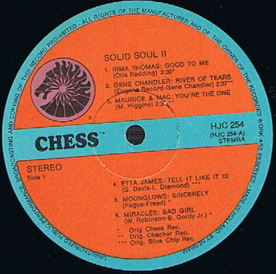 A1. Irma Thomas - Good To Me A2. Gene Chandler - River Of Tears A3. Maurice & Mac - You're The One A4. Etta James - Tell It Like It Is A5. The Moonglows - Sincerely A6. The Miracles - Bad Girl B1. Gene Chandler - Bless Our Love B2. Etta James - My Dearest Darling B3. Maurice & Mac - Lean On Me B4. Irma Thomas - I've Been Loving You B5. The Moonglows - Ten Commandments Of Love B6. Bobby Moore (16) - Reachin' Out