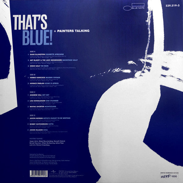 A1. Duke Ellington - Fleurette Africain A2. Art Blakey & The Jazz Messengers - Backstage Sally A3. Eddie Gale - The Rain B1. Herbie Hancock - Maiden Voyage B2. Horace Parlan - Home is Africa C1. Andrew Hill - Hey Hey C2. Lou Donaldson - One Cylinder C3. Wayne Shorter - Montezuma D1. Jason Moran - Artists Ought to be Writing D2. Bobby Hutcherson - Catta D3. Jackie McLean - Soul