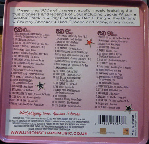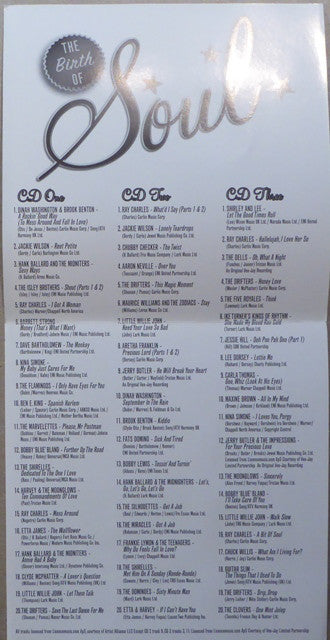 1-1. Dinah Washington, Brook Benton - A Rockin' Good Way (To Mess Around And Fall In Love) 1-2. Jackie Wilson - Reet Petite 1-3. Hank Ballard & The Midnighters - Sexy Ways 1-4. The Isley Brothers - Shout (Parts 1 & 2) 1-5. Ray Charles - I Got A Woman 1-6. Barrett Strong - Money (That's What I Want) 1-7. Dave Bartholomew - The Monkey 1-8. Nina Simone - My Baby Just Cares For Me 1-9. The Flamingos - I Only Have Eyes For You 1-10. Ben E. King - Spanish Harlem 1-11. The Marvelettes - Please, Mr Postman 1-12. Bobby Bland - Further Up The Road 1-13. The Shirelles - Dedicated To The One I Love 1-14. The Moonglows - Ten Commandments Of Love 1-15. Ray Charles - Mess Around 1-16. Etta James - The Wallflower 1-17. Hank Ballard & The Midnighters - Annie Had A Baby 1-18. Clyde McPhatter - A Lover's Question 1-19. Little Willie John - Let Them Talk 1-20. The Drifters - Save The Last Dance For Me 2-1. Ray Charles - What'd I Say (Parts 1 & 2) 2-2. Jackie Wilson - Lonely Teardrops 2-3. Chubby Checker - The Twist 2-4. Aaron Neville - Over You 2-5. The Drifters - This Magic Moment 2-6. Maurice Williams & The Zodiacs - Stay 2-7. Little Willie John - Need Your Love So Bad 2-8. Aretha Franklin - Precious Lord (Parts 1 & 2) 2-9. Jerry Butler - He Will Break Your Heart 2-10. Dinah Washington - September In The Rain 2-11. Brook Benton - Kiddie 2-12. Fats Domino - Sick And Tired 2-13. Bobby Lewis - Tossin' & Turnin' 2-14. Hank Ballard & The Midnighters - Let's Go, Let's Go, Let's Go 2-15. The Silhouettes - Get A Job 2-16. The Miracles - Got A Job 2-17. Frankie Lymon & The Teenagers - Why Do Fools Fall In Love? 2-18. The Shirelles - Met Him On A Sunday 2-19. The Dominoes - Sixty Minute Man 2-20. Etta & Harvey - If I Can't Have You 3-1. Shirley And Lee - Let The Good Times Roll 3-2. Ray Charles - Hallelujah, I love Her So 3-3. The Dells - Oh, What A Night 3-4. The Drifters - Honey Love 3-5. The 5 Royales - Think 3-6. Ike Turner's Kings Of Rhythm - She Made My Blood Run Cold 3-7. Jessie Hill - Ooh Poo Pah Doo (Part 1) 3-8. Lee Dorsey - Lottie Mo 3-9. Carla Thomas - Gee, Whiz (Look At His Eyes) 3-10. Maxine Brown - All In My Mind 3-11. Nina Simone - I Loves You, Porgy 3-12. Jerry Butler, The Impressions - For Your Precious Love 3-13. The Moonglows - Sincerely 3-14. Bobby Bland - I'll Take Care Of You 3-15. Little Willie John - Walk Slow 3-16. Ray Charles - A Bit Of Soul 3-17. Chuck Willis - What Am I Living For? 3-18. Eddie "Guitar Slim" Jones - The Things That I Used To Do 3-19. The Drifters - Drip, Drop 3-20. The Clovers - One Mint Julep