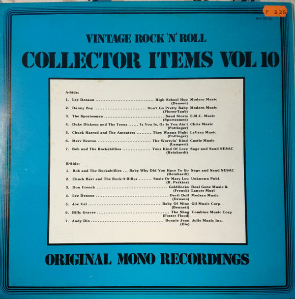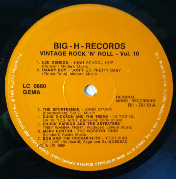 A1. Lee Denson - High School Hop A2. Danny Boy (15) - Don't Go Pretty Baby A3. The Sportsmen (2) - Sand Storm A4. Duke Dickson, The Teens (4) - Is You Is, Or Is You Ain't? A5. Chuck Harrod & The Anteaters - They Wanna Fight A6. Merv Benton - The Worrying Kind A7. Bob And The Rockbillies - Your Kind Of Love B1. Bob And The Rockbillies - Baby Why Did You Have To Go B2. Chuck Barr And The Rockabillys - Susie Or Mary Lou B3. Don French - Goldilocks B4. Lee Denson - Devil Doll B5. Joe Val - Baby Of Mine B6. Billy Graves - The Shag (Is Totally Cool) B7. Andy Dio - Bonnie Jean
