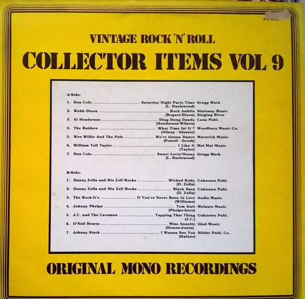 A1. Don Cole - Saturday Night Party Time A2. Webb Dixon - Rock Awhile A3. Al Henderson - Ding Dong Dandy A4. The Raiders (10) - What Time Is It ? A5. Wee Willie & The Pals - We're Gonna Dance A6. Bill Taylor (5) - I Like It A7. Don Cole - Sweet Lovin' Honey B1. Danny Zella And His Zell Rocks - Wicked Ruby B2. Danny Zella And His Zell Rocks - Black Saxs B3. The Rock-Its - If You've Never Been In Love B4. Johnny Phelps - Tom Katt B5. J.C And The Cavemen - Tapping That Thing B6. Oneil Howes - Miss Annette B7. Johnny Stark (2) - I Wanna See You
