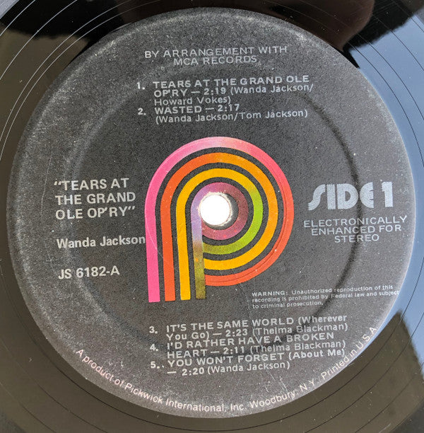 A1. Tears At The Grand Ole Op'ry 2:19 A2. Wasted 2:17 A3. It's The Same World (Wherever You Go) 2:23 A4. I'd Rather Have A Broken Heart 2:11 A5. You Won't Forget (About Me) 2:20 B1. Lovin' Country Style 2:26 B2. Nobody's Darlin' But Mine 2:46 B3. If You Knew What I Know 2:33 B4. You'd Be The First One To Know 2:24