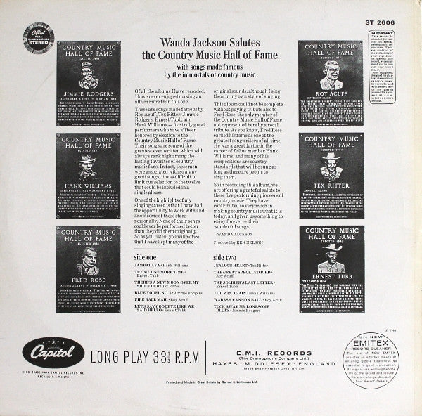 Made By Garrod & Lofthouse Ltd. Printed By Garrod & Lofthouse Ltd. Record Company E.M.I. Records Record Company The Gramophone Co. Ltd. Published By Acuff-Rose Published By World Music (5) Published By Campbell Connelly & Co. Ltd. Published By Southern Music Published By Carlin Music Corp. Published By Chappell