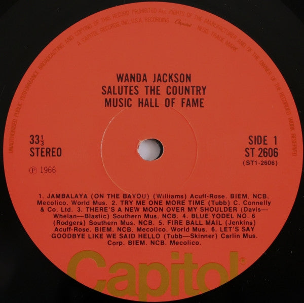 A1. Jambalaya 1:56 A2. Try Me One More Time 2:34 A3. There's A New Moon Over My Shoulder 2:15 A4. Blue Yodel No.6 2:48 A5. Fire Ball Mail 2:00 A6. Let's Say Goodbye Like We Said Hello 2:31 B1. Jealous Heart 2:31 B2. The Great Speckled Bird 2:51 B3. The Soldier's Last Letter 3:13 B4. You Win Again 2:40 B5. Wabash Cannon Ball 2:36 B6. Tuck Away My Lonesome Blues 1:58