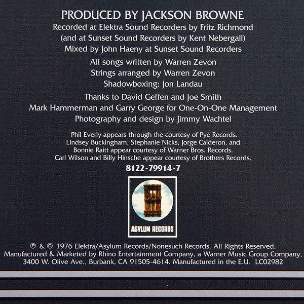 Manufactured By Rhino Entertainment Company Marketed By Rhino Entertainment Company Pressed By Optimal Media Production Made By Record Technology Incorporated Phonographic Copyright (p) Elektra/Asylum/Nonesuch Records Copyright (c) Elektra/Asylum/Nonesuch Records Recorded At Elektra Sound Recorders Recorded At Sunset Sound Recorders Recorded At Record Plant, Sausalito Mixed At Sunset Sound Recorders
