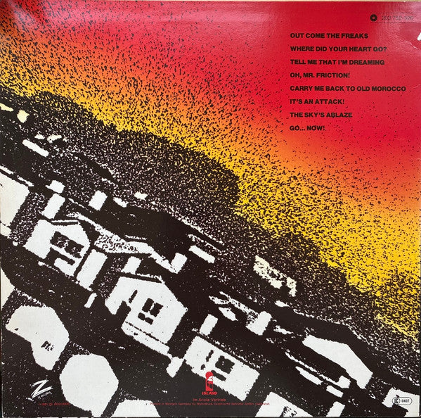 A1. Out Come The Freaks 5:41 A2. Where Did Your Heart Go? 4:55 A3. Tell Me That I'm Dreaming 4:58 A4. Oh, Mr. Friction 3:31 B1. Carry Me Back To Old Morocco 6:01 B2. It's An Attack! 3:11 B3. The Sky's Ablaze 2:16 B4. Go...Now! 5:34