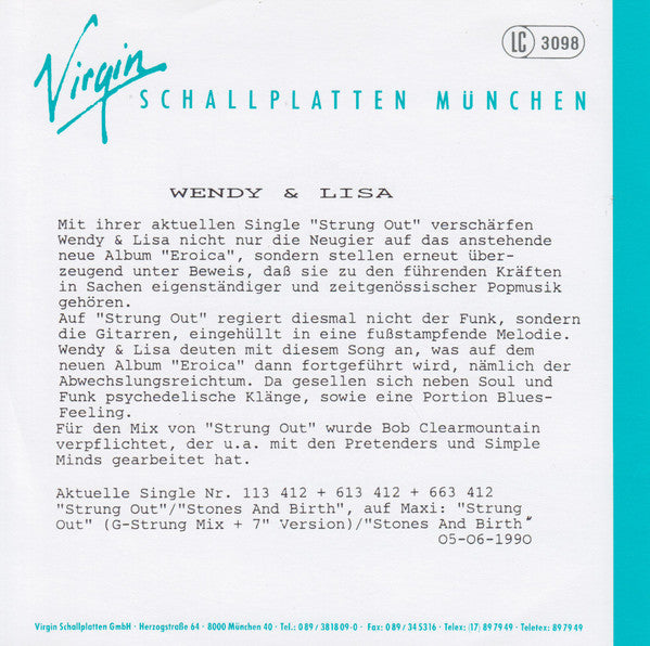 Phonographic Copyright (p) Virgin Records Ltd. Copyright (c) Virgin Records Ltd. Published By Girl Brothers Music Published By Virgin Music (Publishers) Ltd. Printed By TOPAC Pressed By Sonopress