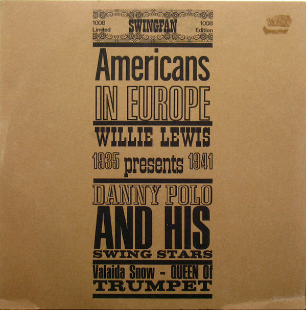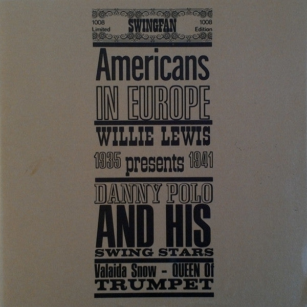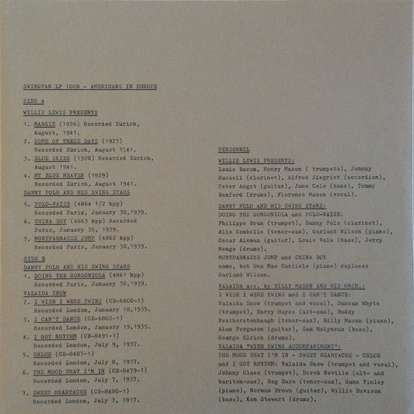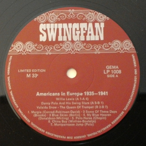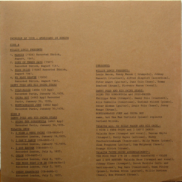 A1. Willie Lewis Presents - Margie A2. Willie Lewis Presents - Some Of These Days A3. Willie Lewis Presents - Blue Skies A4. Willie Lewis Presents - My Blue Heaven A5. Danny Polo & His Swing Stars - Polo-Naise A6. Danny Polo & His Swing Stars - China Boy A7. Danny Polo & His Swing Stars - Montparnasse Jump B1. Danny Polo & His Swing Stars - Doing The Gorgonzola B2. Valaida Snow - I Wish I Were Twins B3. Valaida Snow - I Can't Dance B4. Valaida Snow - I Got Rhythm B5. Valaida Snow - Chloe B6. Valaida Snow - The Mood That I'm In B7. Valaida Snow - Sweet Heartache