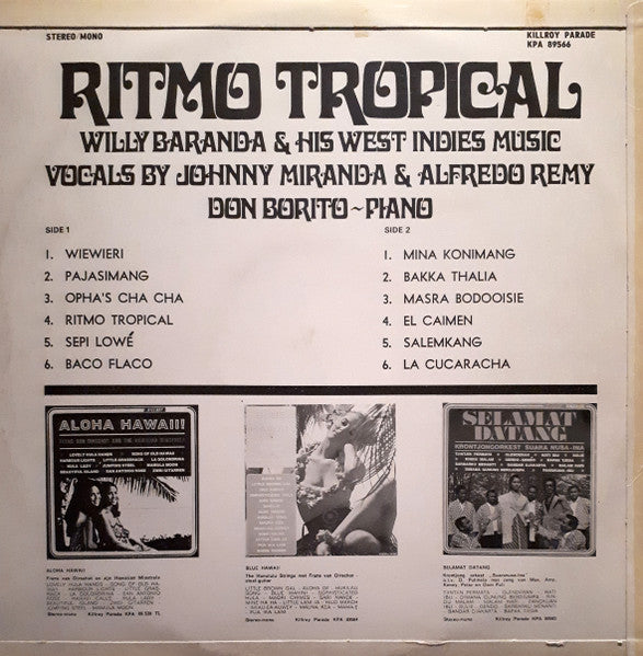 A1. Wiewieri A2. Pajasimang A3. Opha's Cha Cha A4. Ritmo Tropical A5. Sepi Lowé A6. Baco Flaco B1. Mina Konimang B2. Bakka Thalia B3. Masra Bodooisie B4. El Caimen B5. Salemkang B6. La Cucaracha