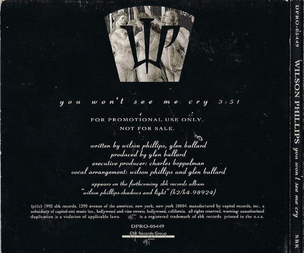 Record Company EMI Records Group North AmericaManufactured By Capitol Records, Inc.Phonographic Copyright (p) SBK RecordsCopyright (c) SBK RecordsPublished By EMI Blackwood Music Inc.Published By Get Out SongsPublished By Lentle MusicPublished By Smooshie MusicPublished By WEA Music PublishingPublished By Aerostation CorporationPublished By MCA MusicPublished By MCA Inc.Recorded At Westlake StudiosMixed At Westlake StudiosMastered At Bernie Grundman MasteringData provided by Discogs