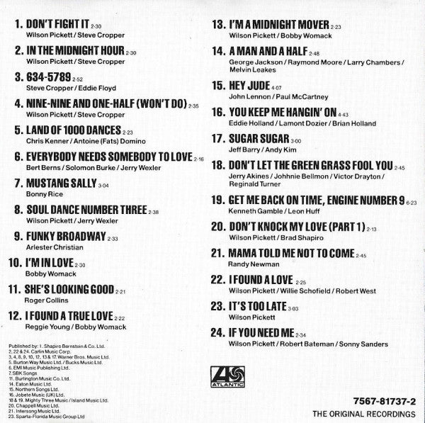 1. Don't Fight It 2:302. In The Midnight Hour 2:303. 634-5789 2:524. Nine-Nine And One-Half (Won't Do) 2:355. Land Of 1000 Dances 2:236. Everybody Needs Somebody To Love 2:167. Mustang Sally 3:048. Soul Dance Number Three 2:389. Funky Broadway 2:3310. I'm In Love 2:3011. She's Looking Good 2:2112. I Found A True Love 2:2213. I'm A Midnight Mover 2:2314. A Man And A Half 2:4815. Hey Jude 4:0716. You Keep Me Hangin' On 4:4317. Sugar Sugar 3:0018. Don't Let The Green Grass Fool You 2:4519. Get Me Back On Time, Engine Number 9 6:2320. Don't Knock My Love (Part 1) 2:1321. Mama Told Me Not To Come 2:4522. I Found A Love 2:2523. It's Too Late 3:0324. If You Need Me 2:34
