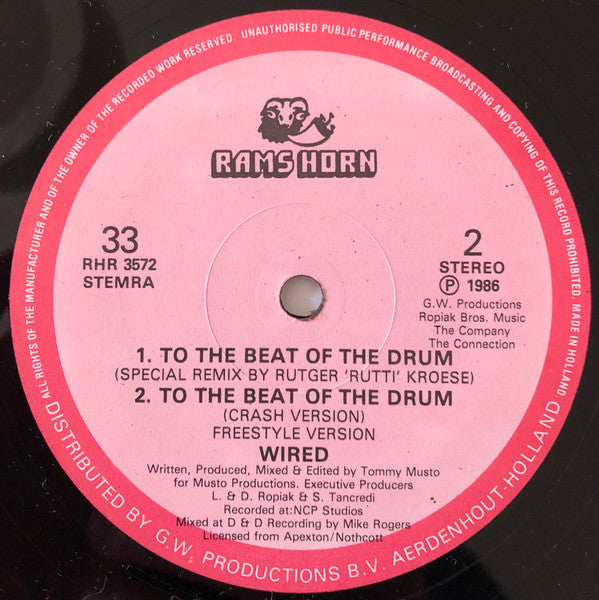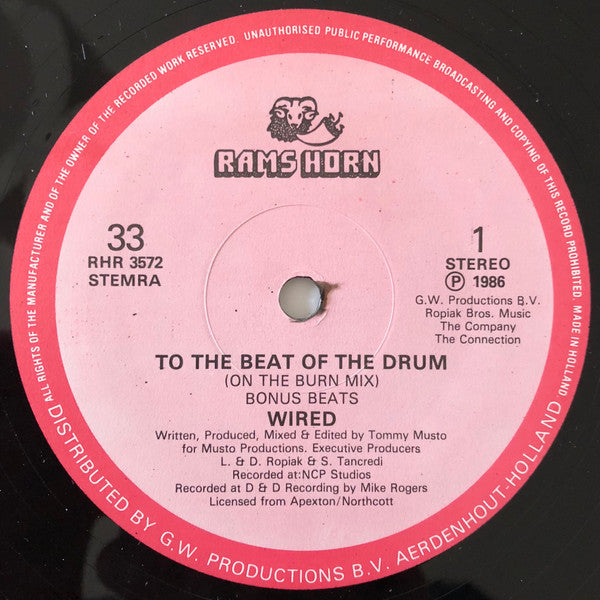 A1. To The Beat Of The Drum (On The Burn Mix) A2. To The Beat Of The Drum (Bonus Beats) B1. To The Beat Of The Drum (Special Remix By Rutger "Rutti" Kroese) B2. To The Beat Of The Drum (Crash Version) B3. To The Beat Of The Drum (Freestyle Version)