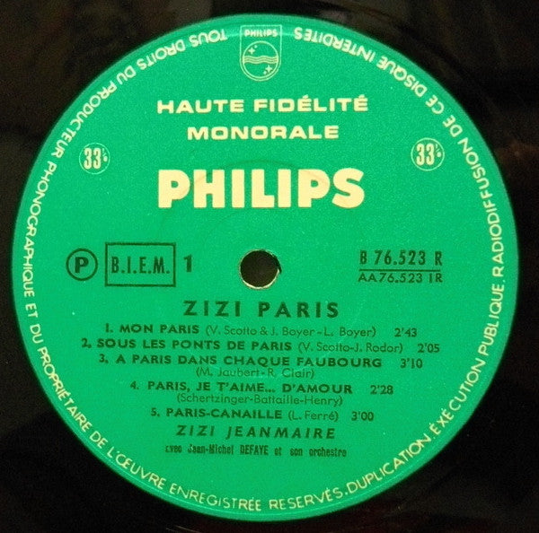 A1. Mon Paris 2:43 A2. Sous Les Ponts De Paris 2:05 A3. A Paris Dans Chaque Faubourg 3:10 A4. Paris Je T'aime... D'amour 2:28 A5. Paris-Canaille 3:00 B1. Sur Les Quais Du Vieux Paris 2:48 B2. Paris Sera Toujours Paris 1:30 B3. Paris-Taxi 3:15 B4. En Parlant Un Peu De Paris 2:20 B5. Les Prenoms De Paris 2:25