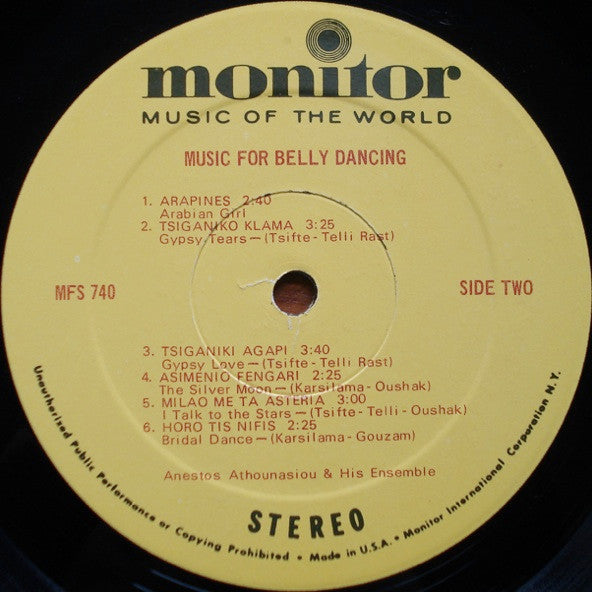 Ανέστος Αθανασίου - Music For Belly Dancing (Instrumental Music Of The Near East) (LP, Album, Comp)