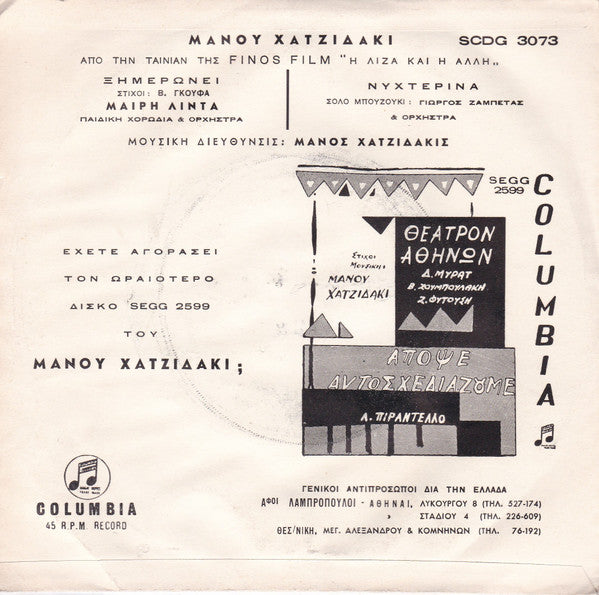 Manos Hadjidakis - Από Την Ταινία "Η Λίζα Και Η Άλλη" (7", Single)