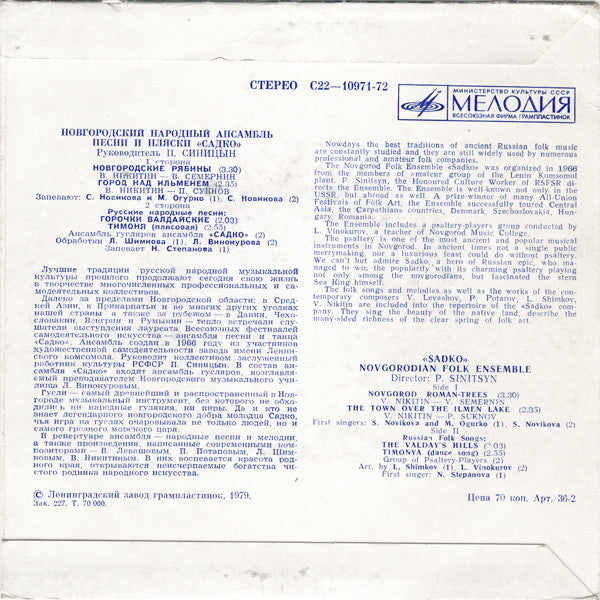 Duplicated in English: «Sadko» Novgorodian Folk Ensemble
