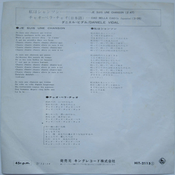 A. Je Suis Une Chanson 私はシャンソン 2:47B. Ciao Bella Ciao (In Japanese) チャオ・ベラ・チャオ(日本語) 3:05