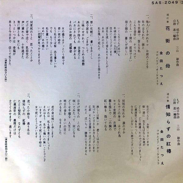 A. 花街の母 4:09B. 情知らずの紅椿 4:02