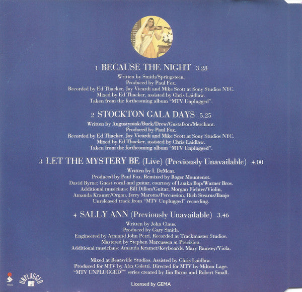 1. Because The Night (Live) 3:402. Stockton Gala Days (Live) 5:043. Let The Mystery Be (Live) 2:594. Sally Ann 3:54