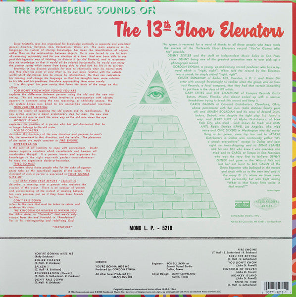 A1. You're Gonna Miss Me 2:24 A2. Roller Coaster 5:00 A3. Splash 1 3:50 A4. Reverberation (Doubt) 2:46 A5. Don't Fall Down 3:00 B1. Fire Engine 3:22 B2. Thru The Rhythm 3:50 B3. You Don't Know 2:38 B4. Kingdom Of Heaven 3:05 B5. Monkey Island 2:38 B6. Tried To Hide 2:43