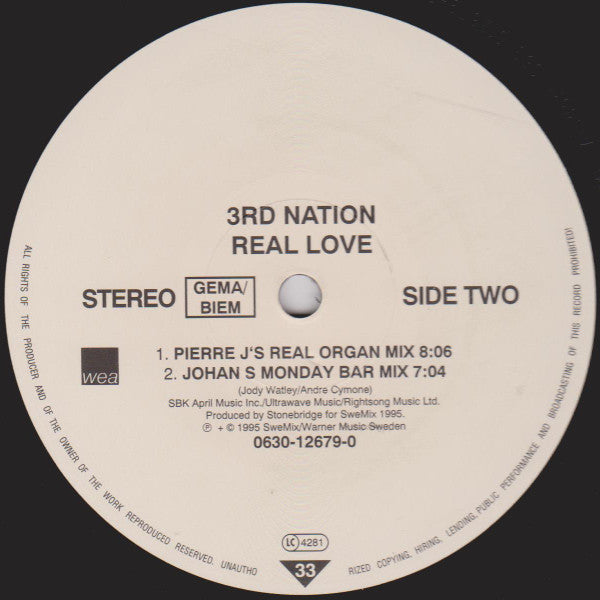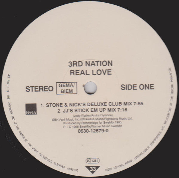 A1. Real Love (Stone & Nick's Deluxe Club Mix) A2. Real Love (JJ's Stick 'Em Up Mix) B1. Real Love (Pierre J's Real Organ Mix) B2. Real Love (Johan S Monday Bar Mix)