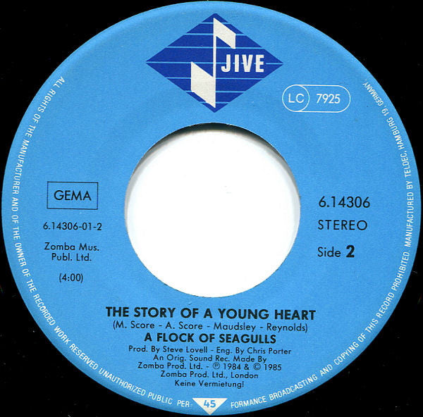 Made in Germany · TELDEC Schallplatten GmbH · 2000 Hamburg 20 ℗ 1984 & © 1985 Zomba Mus. Publ. Ltd. An orig. sound rec. made by Zomba Prod. Ltd. ℗ 1984 & © 1985 Zomba Prod. Ltd., London Manufactured by Teldec, Hamburg, Germany 1st cat# on labels 2nd cat# on sleeve The cover has the same artwork on both sides.