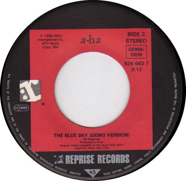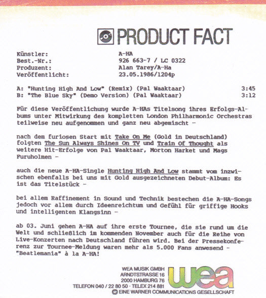 Some copies come with an info sheet. Manufactured in Germany ℗ © 1986 WEA International Inc. ATV Music Corp. BMI