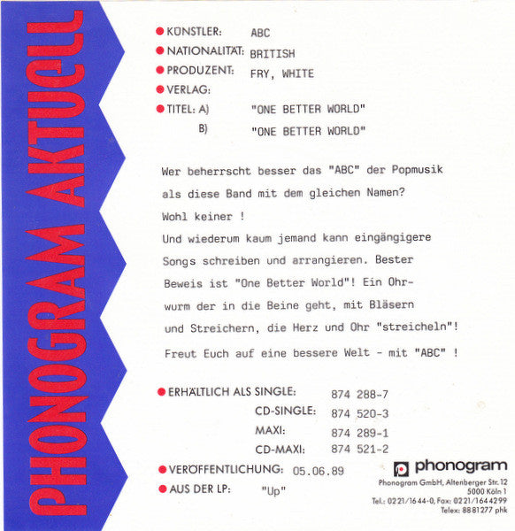Phonographic Copyright (p) Phonogram Ltd. (London)Copyright (c) Phonogram Ltd. (London)Published By Neutron Music Ltd.Published By 10 Music Ltd.Lacquer Cut At PDO, GermanyPressed By PDO, GermanyData provided by Discogs
