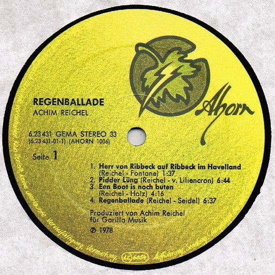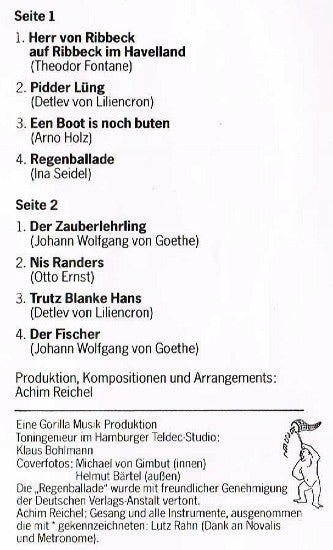A1. Herr Von Ribbeck Auf Ribbeck Im Havelland 1:37 A2. Pidder Lüng 6:44 A3. Een Boot Is Noch Buten 4:16 A4. Regenballade 6:37 B1. Der Zauberlehrling 6:30 B2. Nis Randers 3:20 B3. Trutz Blanke Hans 4:42 B4. Der Fischer 4:42