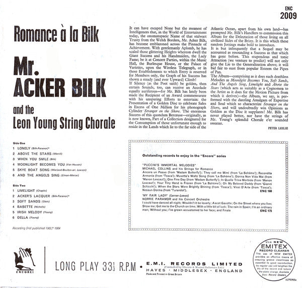 A1. Lonely A2. Above The Stars A3. When You Smile A4. Moonlight Becomes You A5. Skye Boat Song A6. And The Angels Sing B1. Limelight B2. Acker's Lacquer B3. Soft Sands B4. Babette B5. Irish Melody B6. Della