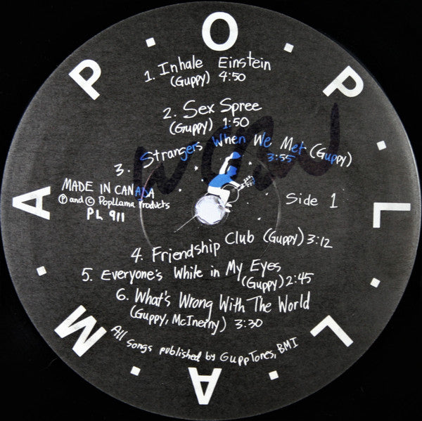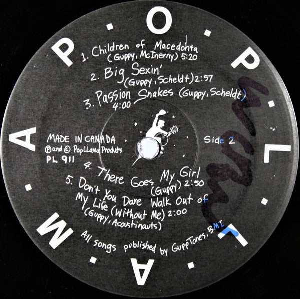 A1. Inhale Einstein 4:50 A2. Sex Spree 1:50 A3. Strangers When We Met 3:55 A4. Friendship Club 3:12 A5. Everyone's White In My Eyes 2:45 A6. What's Wrong With The World 3:30 B1. Children Of Macedonia 5:20 B2. Big Sexin' 2:57 B3. Passion Snakes 4:00 B4. There Goes My Girl 2:50 B5. Don't You Dare Walk Out Of My Life (Without Me) 2:00