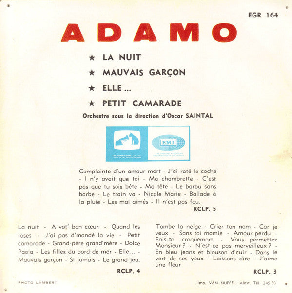 A1. La Nuit 3:20 A2. Mauvais Garçon 3:07 B1. Elle... 2:55 B2. Petit Camarade 2:45