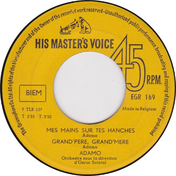 A1. Mes Mains Sur Tes Hanches 2:55 A2. Grand-Père, Grand Mère 2:20 B1. Viens Ma Brune 3:05 B2. Le Barbu Sans Barbe 2:35