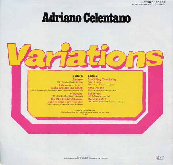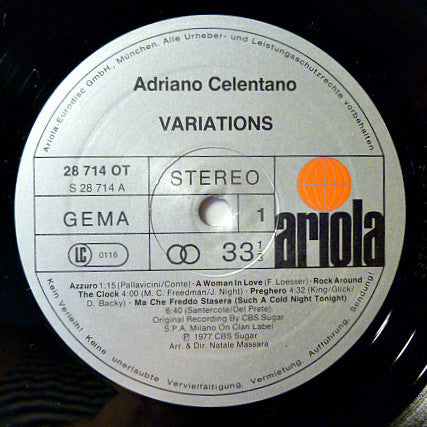 Record Company CBS Sugar S.p.A. Record Company Ariola Eurodisc GmbH Distributed By Ariola Phonographic Copyright (p) CBS Sugar Printed By Mohndruck Reinhard Mohn OHG Published By Edizioni Clan Published By Chappell Published By Suvini Zerboni Published By Aberbach Published By Clan (4) Published By Luna Park (2) Published By Edir Published By Gerig Pressed By Sonopress