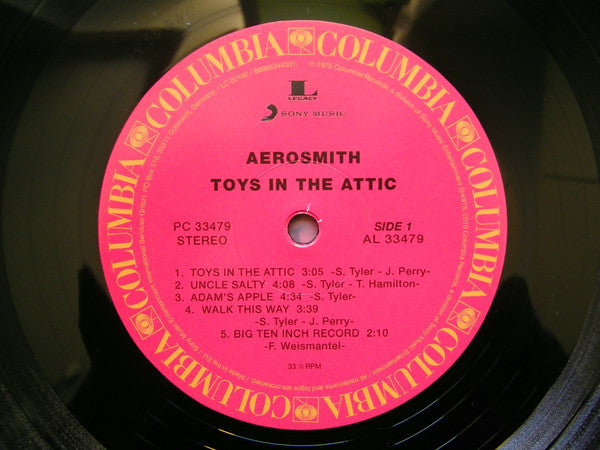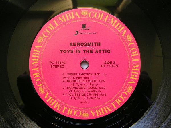 A1. Toys In The Attic 3:05 A2. Uncle Salty 4:08 A3. Adam's Apple 4:34 A4. Walk This Way 3:39 A5. Big Ten Inch Record 2:10 B1. Sweet Emotion 4:34 B2. No More No More 4:35 B3. Round And Round 5:02 B4. You See Me Crying 5:12