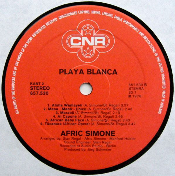 A1. Playa Blanca 3:13 A2. Gorilla Baby 3:05 A3. Limbo Love 3:11 A4. Que Pasa Mombasa 3:14 A5. Mirabel 3:09 A6. Banana Joe 2:55 B1. Aloha Wamayeh 3:07 B2. Mana - Mana - Chico 2:43 B3. Marabu 2:19 B4. Al Capone 2:46 B5. African Baby Face 2:43 B6. Tucanara (African Opera) 3:47