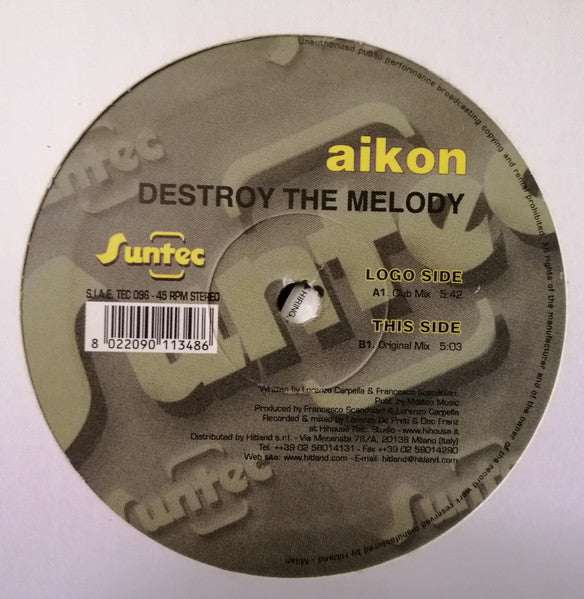 A1. Destroy The Melody (Club Mix) 5:43 B1. Destroy The Melody (Original Mix) 5:16