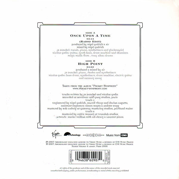 Recorded at Revolvair and Gang Studios, Paris. Track 1: Mastered at Gateway Mastering Studios, Portland Maine Track 2: Mastered at Translab Studios Taken from the album "Pocket Symphony". (P) 2007 Aircheology Exclusive License To Virgin Music A Division Of EMI Music France © 2007 Aircheology Exclusive License To Virgin Music A Division Of EMI Music France Xavier Veilhan © ADAGP, Paris 2006 Made in EU