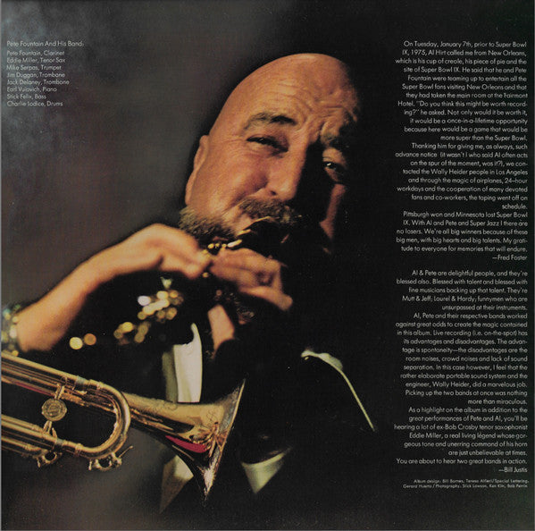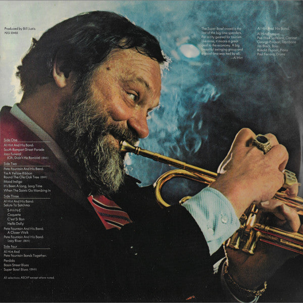 A1. Al Hirt And His Band - South Rampart Street Parade 8:46 A2. Al Hirt And His Band - Jazz Funeral (Oh, Didn't He Ramble) 10:10 B1. Pete Fountain And His Band - Tie A Yellow Ribbon Round The Ole Oak Tree 3:11 . Mood Indigo / It's Been A Long, Long Time 7:19 B2.a. Pete Fountain And His Band - Mood Indigo B2.b. Pete Fountain And His Band - It's Been A Long, Long Time . - B3. Pete Fountain And His Band - When The Saints Go Marching In 6:17 . Salute To Satchmo 9:04 C1.a. Al Hirt And His Band - S - H - I - N - E C1.b. Al Hirt And His Band - Coquette C1.c. Al Hirt And His Band - C'est Si Bon C1.d. Al Hirt And His Band - Hello Dolly . - C2. Pete Fountain And His Band - A Closer Walk 5:20 C3. Pete Fountain And His Band - Lazy River 3:39 D1. Al Hirt And His Band, Pete Fountain And His Band - Perdido 7:25 D2. Al Hirt And His Band, Pete Fountain And His Band - Basin Street Blues 5:14 D3. Al Hirt And His Band, Pete Fountain And His Band - Super Bowl Blues 7:54
