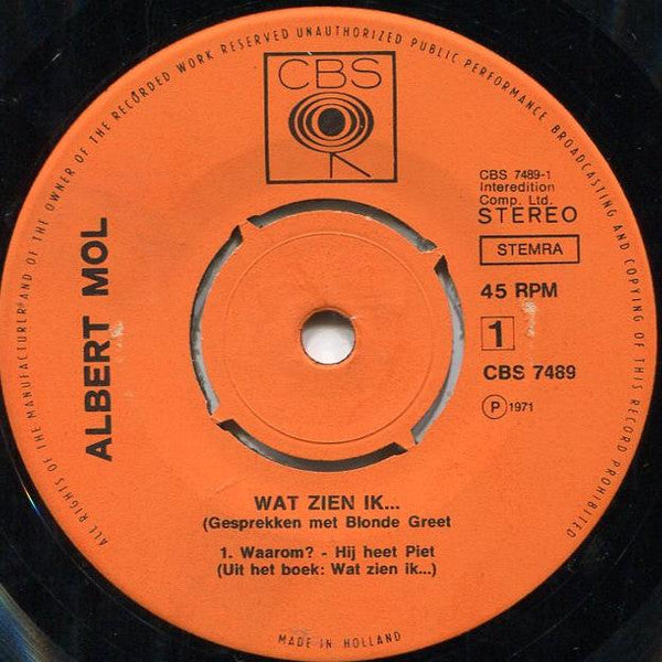 Albert Mol - Wat Zien Ik..... Gesprekken Met Blonde Greet (7", RE)