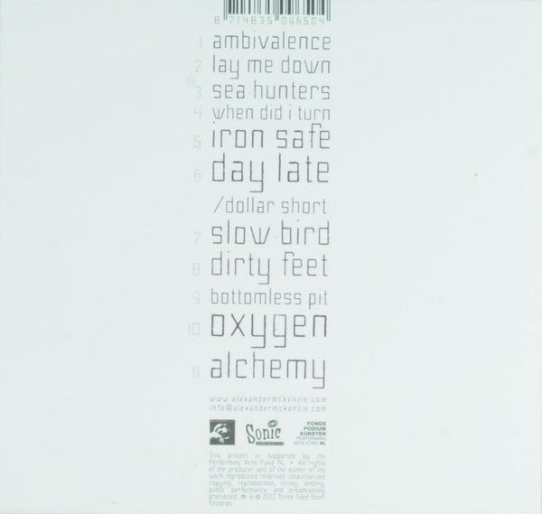 1. Ambivalence 2. Lay Me Down 3. Sea Hunters 4. Hen Did I Turn 5. Iron Safe 6. Day Late / Dollar Short 7. Slow Bird 8. Dirty Feet 9. Bottomless Pitt 10. Oxygen 11. Alchemy