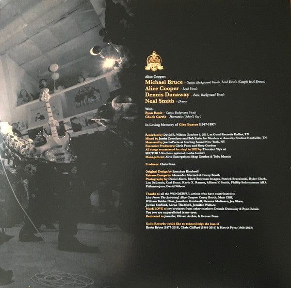 A1. Caught In A Dream A2. Be My Lover A3. I'm Eighteen A4. Is It My Body A5. No More Mr. Nice Guy B1. Under My Wheels B2. School's Out B3. Elected B4. Desperado DVD-1. Documentary Film "Live From The Astroturf, Alice Cooper" DVD-2. Music Video "I'm Eighteen" (Live From The Astroturf) DVD-3. Music Video "Under My Wheels" (Live From The Astroturf) DVD-4. Interview